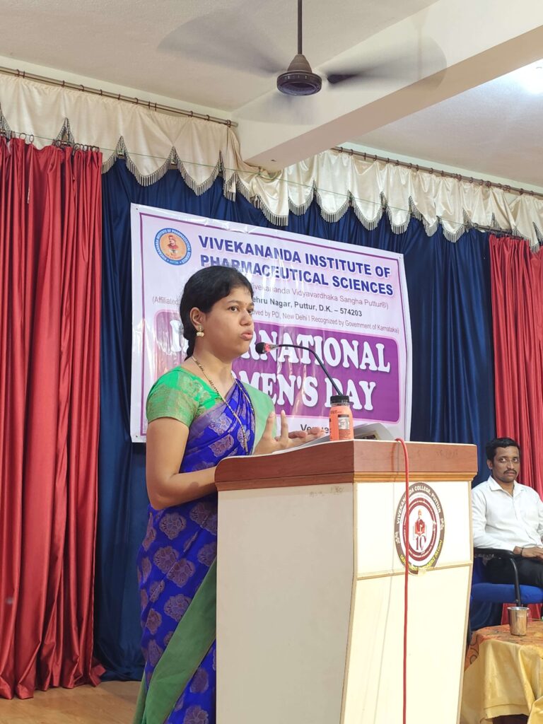 On March 8, 2025, the Vivekananda Institute of Pharmaceutical Sciences, under the umbrella of Vivekananda Vidyavardhaka Sangha Puttur, organized a guest lecture on “Pros and Cons in the Era of Globalization: A Threat to Women in the Cyber World” at the P.G. Seminar Hall. This insightful event was spearheaded by the Gender Sensitization Committee at VIPS in celebration of International Women’s Day.